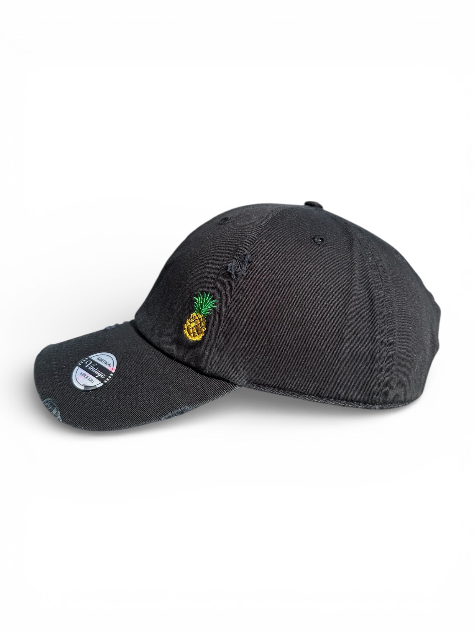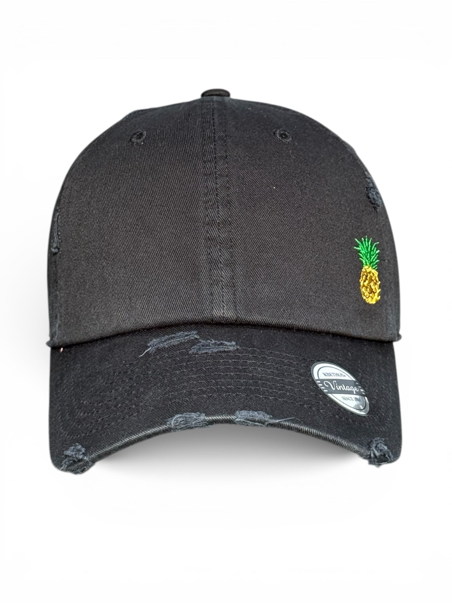 Vintage Distressed Dad Hat with Embroidered Pineapple ๐